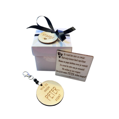 Geschenkdoos (18,5x18,5x7cm) met "liefste mama" met staander met houten ronde tekstbord met tekst: voor een bloem van een mama. Inclusief 2 zeeproosjes, droogbloemen en sleutelhanger.